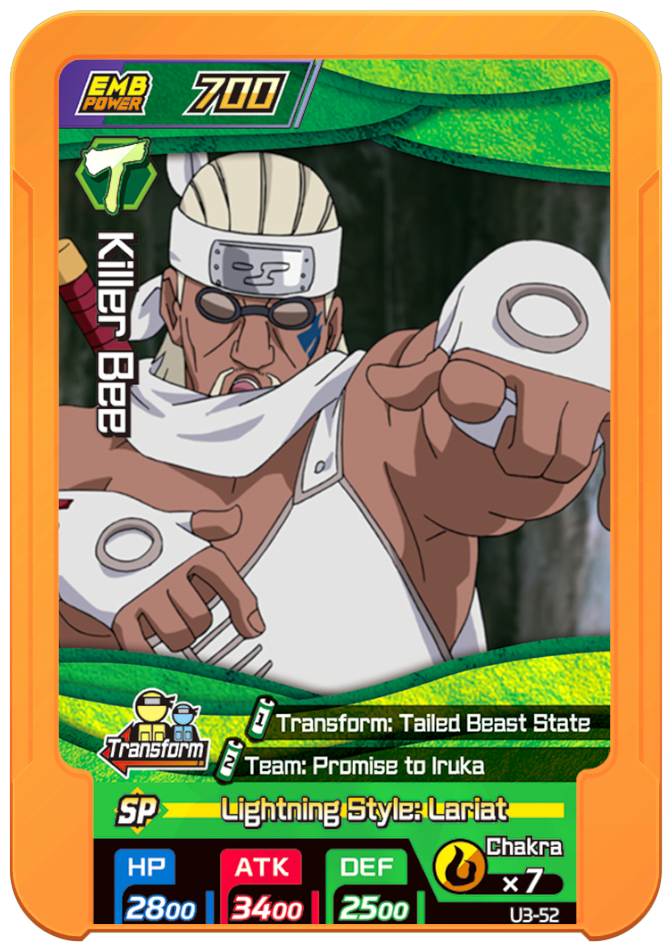 At the end of Round 2, if "Iruka" is an ally, grants 2 chakra to each "Jinchuriki" on your team.