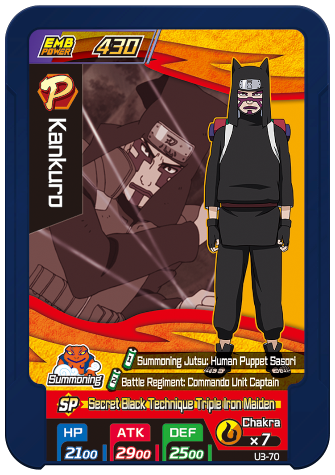 Can be used only once. At the start of the round, if you have more than 5 chakra, summons "Human Puppet: Sasori."