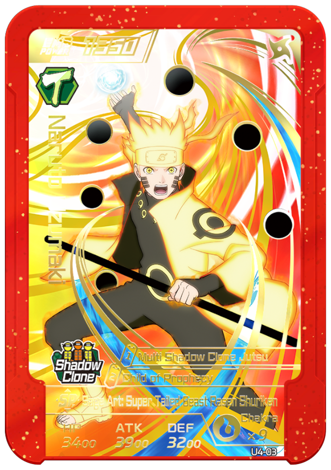 Deals colossal DMG to the enemy AE. The DMG is increased based on your number of "Naruto" allies.Skill 1: Multi Shadow Clone Jutsu