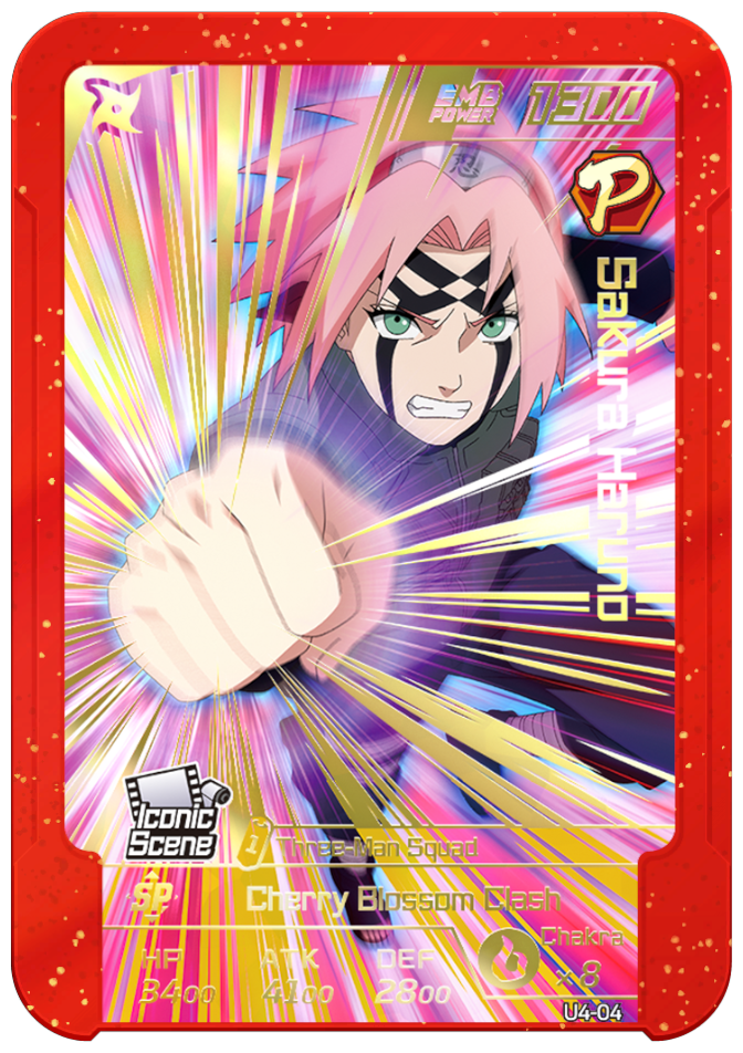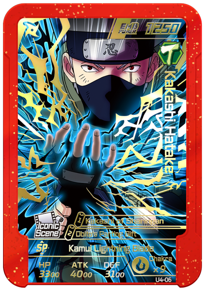 Usable on Round 5. Grants 3 chakra to your team and increases ATK by 3000 until the end of the round.