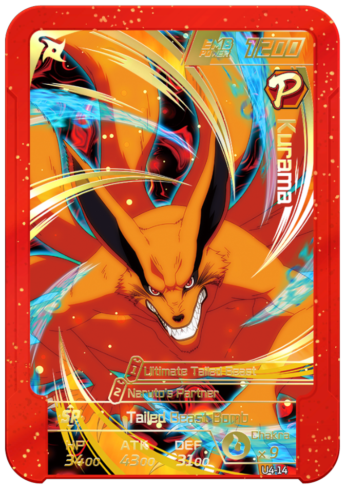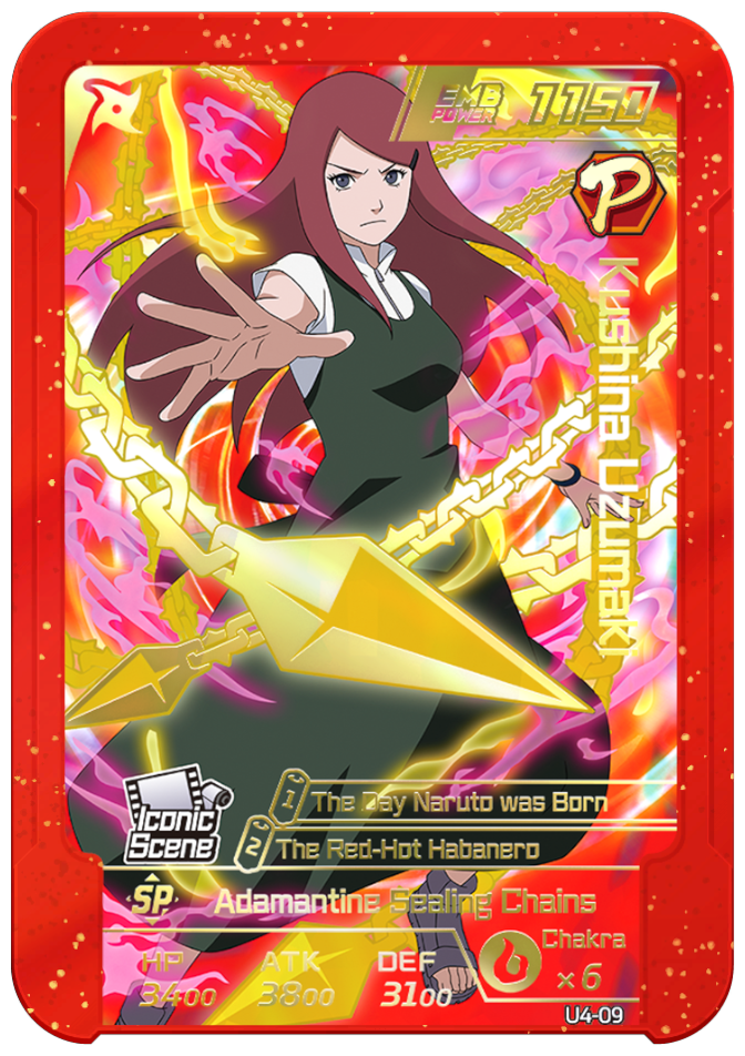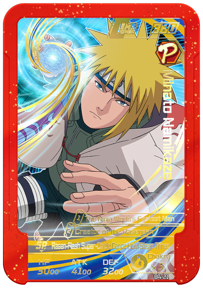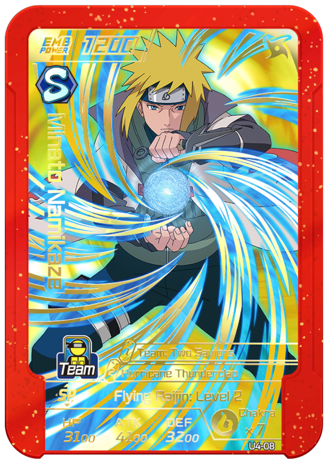 Usable on Round 2. Grants "Naruto" allies 2 chakra and permanently increases ATK and DEF by 1000.