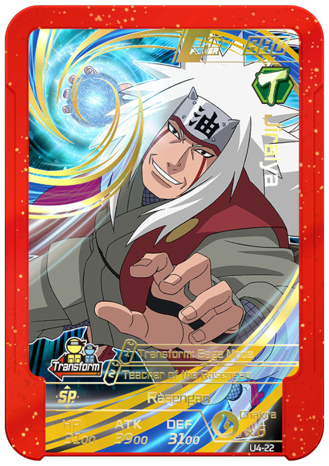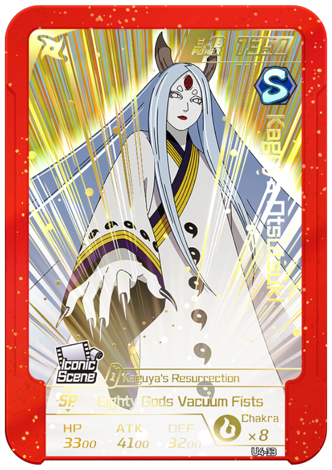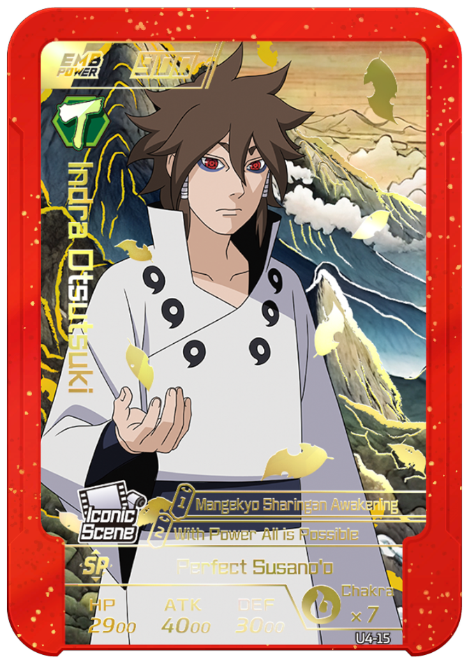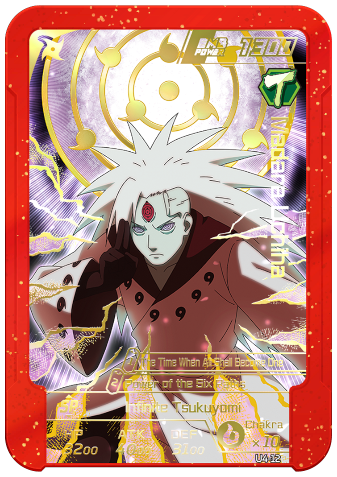 Usable on Round 4. Grants you 3 chakra and permanently increases ATK and DEF by 2000.