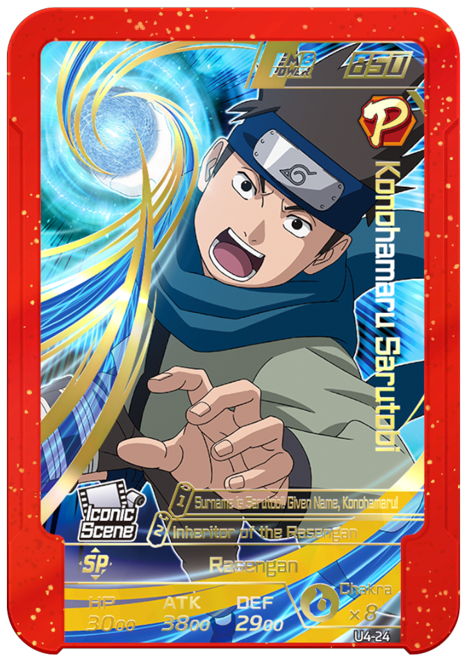 At the start of Round 2, grants 2 chakra to your team's emblems with "Rasen" in the SP name.