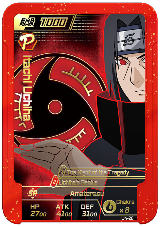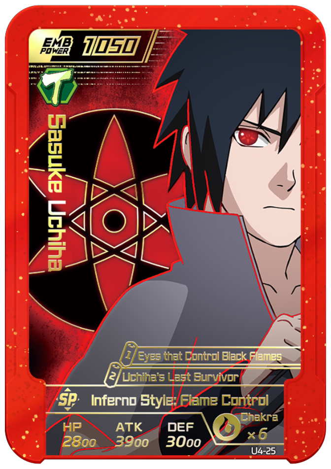 Usable on Round 3. Permanently increases "Sasuke" and "Itachi" allies' ATK by 1500 and DEF by 1000.