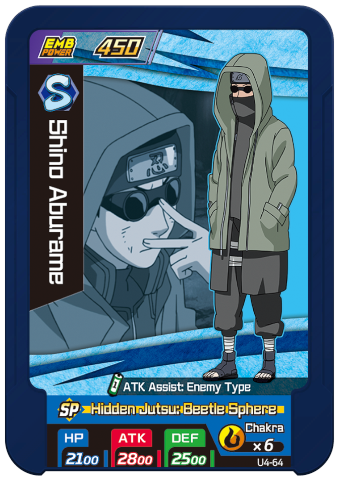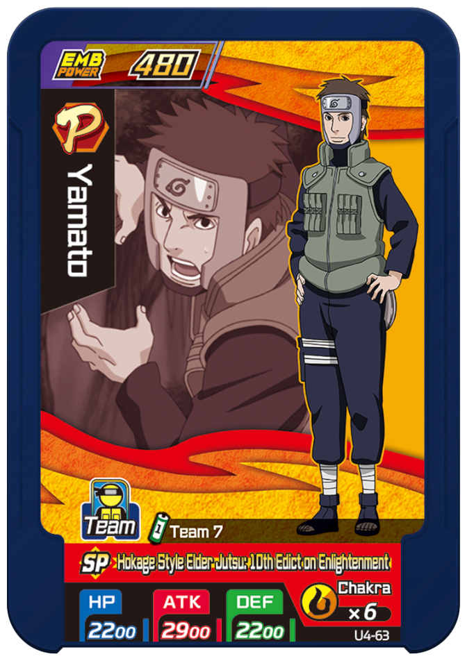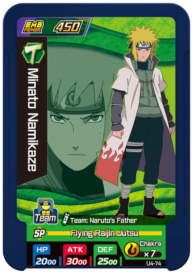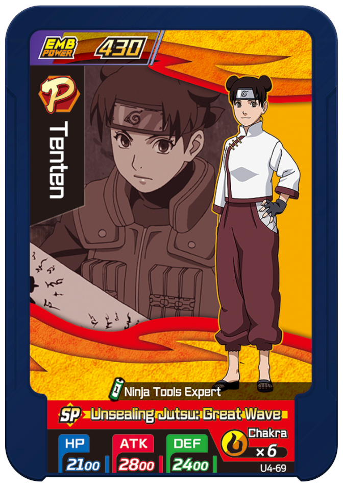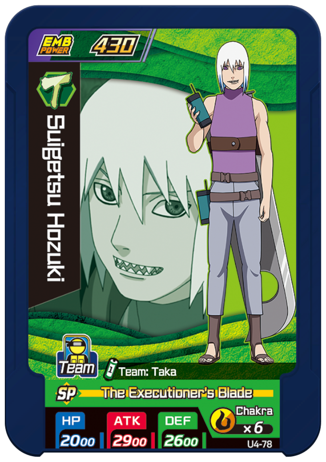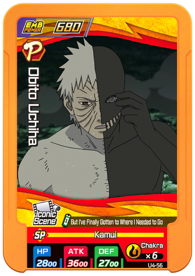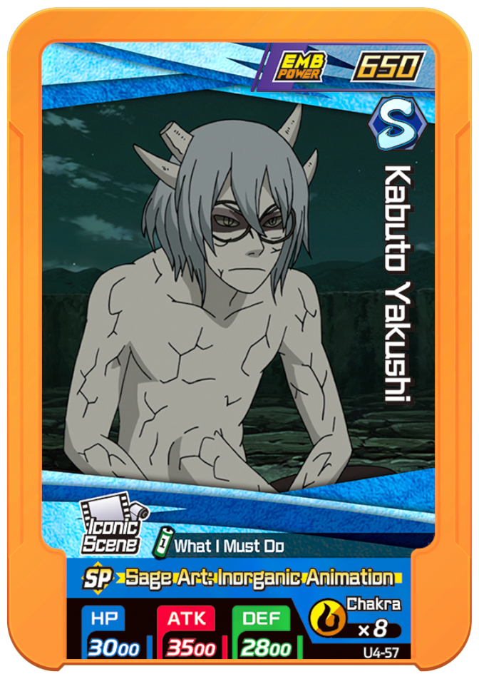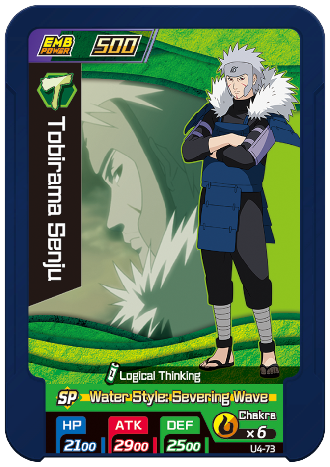 At the start of Round 4, if you have more than 5 chakra, increases your ATK by 1500 until the end of the round. If fewer than 6, grants 3 chakra.