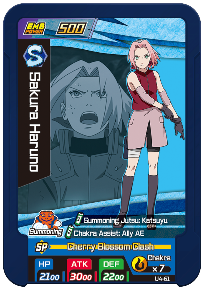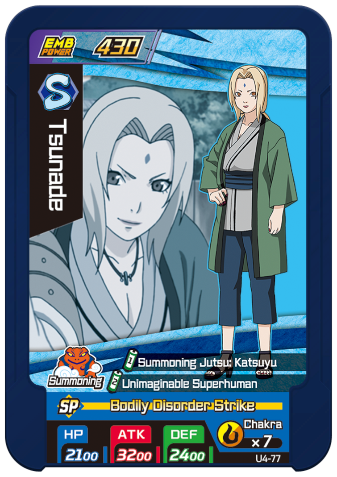 Can be used only once. At the start of the round, if you have more than 6 chakra, summons "Katsuyu."