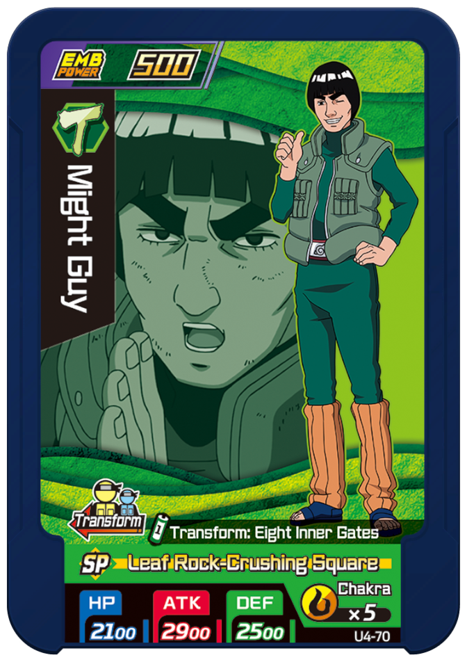 At the start of Round 1, if "Lee," "Tenten," and "Guy" are allies, grants your team 1 chakra.