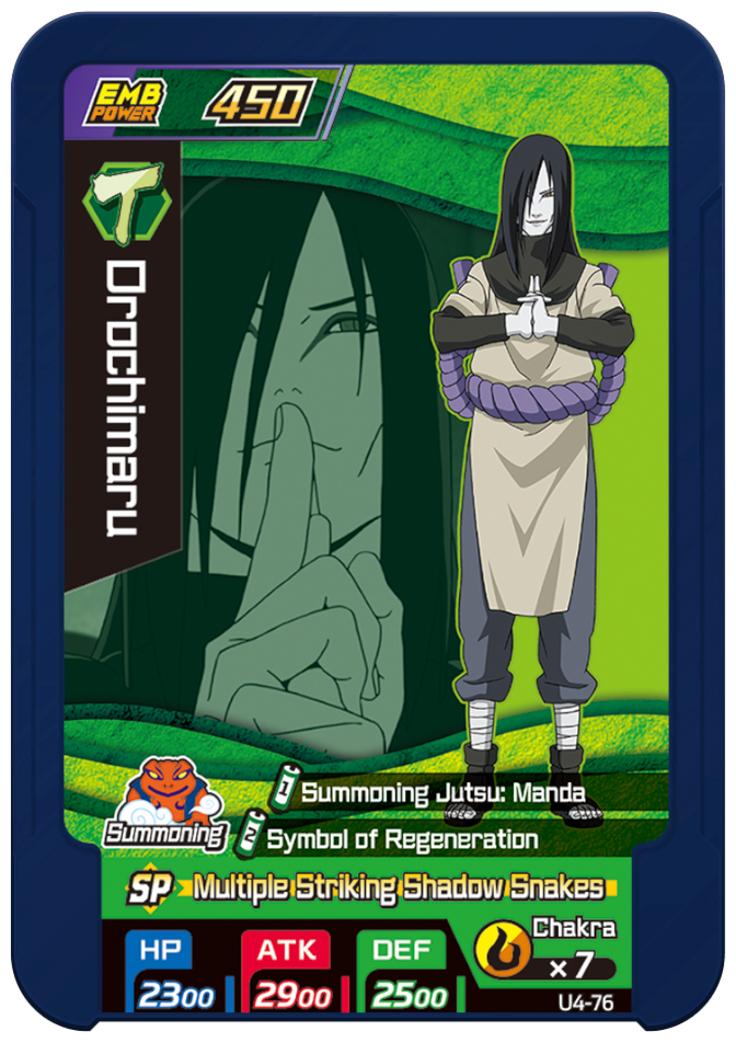 Can be used only once. At the start of the round, if you have more than 6 chakra, summons "Manda."