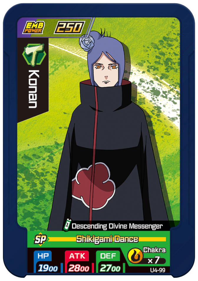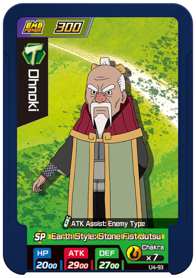Deals heavy DMG to the enemy AE and permanently decreases the enemy AE's ATK by 1000.Skill 1: ATK Up: Chakra
