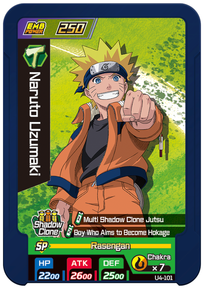 Deals heavy DMG to the enemy AE. The DMG is increased based on your number of "Naruto" allies.Skill 1: Multi Shadow Clone Jutsu