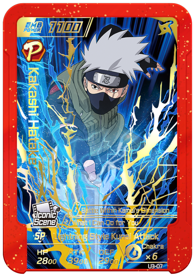 Can be used only once. When deployed as the AE, grants you 2 chakra and permanently increases ATK by 1500.