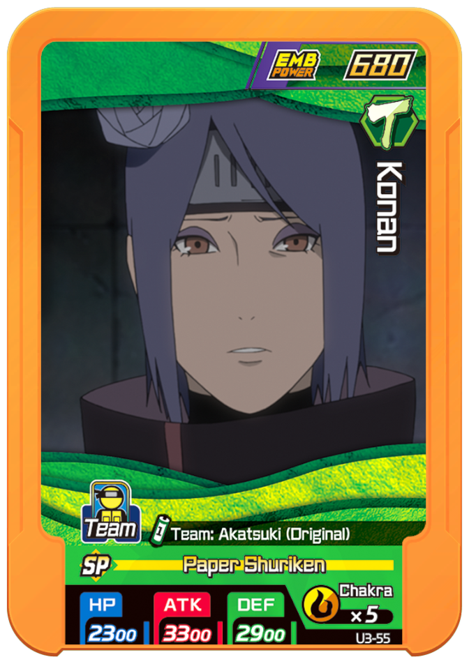 When deployed as the AE, if "Nagato" and "Konan" are allies, grants allies 1 chakra and permanently increases ATK by 500.